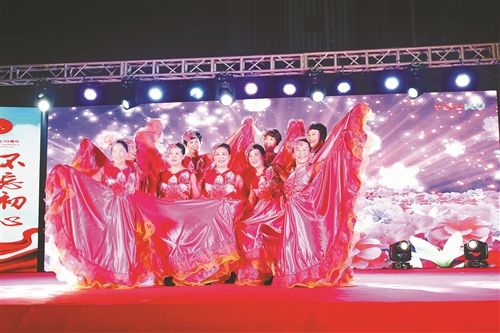 晚上7時許,天色逐漸暗下來,廣場周圍早已聚滿了前來觀看的居民。絢麗燈光下,歡笑聲此起彼伏,大家用最熱情的方式喜迎國慶。“今天是你的生日,我的中國,清晨我放飛一群白鴿……”隨著《今天是你的生日》合唱聲響起,晚會正式拉開帷幕。緊接著紅色舞蹈《大海航行靠舵手》、配樂詩朗誦《我和我的祖國》、獨(dú)唱《龍文》、表演唱《繡紅旗》、豫劇《浪淘沙》、太極拳《養(yǎng)生八段錦》等一個個精彩節(jié)目贏得了觀眾們陣陣熱烈掌聲。廣場舞《天美地美中國美》《贊歌》、合唱《再唱洪湖水》等傳遞正能量的節(jié)目輪番上演,精彩的演繹一次次把現(xiàn)場氣氛推向高潮。