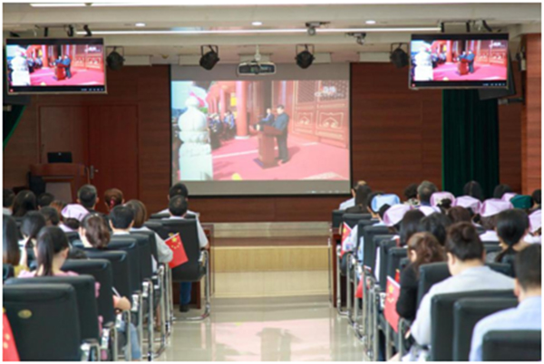 黃淮網(wǎng) 遵照中共徐州市委辦公室文件精神,徐州市兒童醫(yī)院黨委組織全體領(lǐng)導(dǎo)班子成員、中層干部、黨員和職工于2019年10月1日上午9點(diǎn)30分在兒研樓八樓會(huì)議室集中收聽(tīng)收看了慶祝中華人民共和國(guó)成立70周年大會(huì)、閱兵式和群眾游行實(shí)況直播。