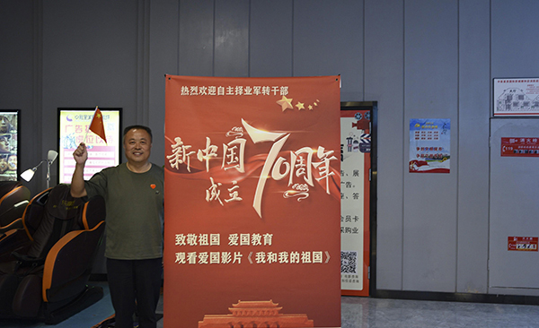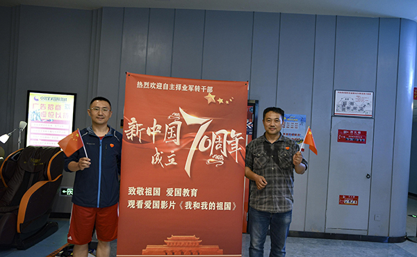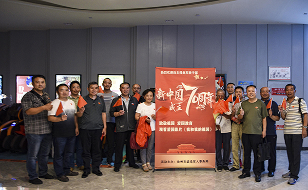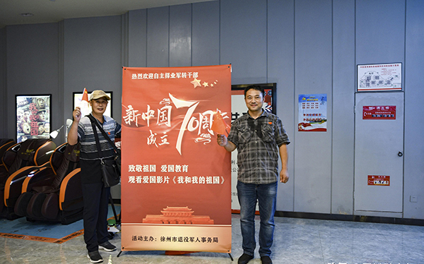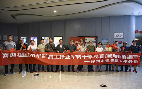為喜迎祖國華誕70周年,徐州市退役軍人事務局就業(yè)創(chuàng)業(yè)處,組織市區(qū)自主擇業(yè)軍轉干部觀看愛國主義電影《我和我的祖國》。自主干部高興地舉著國旗,邁著輕盈的腳步,感受祖國大地70年的巨變,中華兒女倍感驕傲。讓我們共祝愿我們偉大的祖國繁榮昌盛,國泰民安!