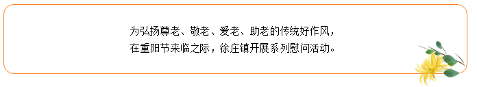 尊老、愛老、敬老、養(yǎng)老是中華民族的傳統(tǒng)美德,也是全社會(huì)的共同責(zé)任,徐莊鎮(zhèn)將進(jìn)一步優(yōu)化服務(wù),為老年人創(chuàng)造更加優(yōu)良的生活環(huán)境,讓每一位老年人都老有所養(yǎng)、老有所依、老有所為、老有所樂。