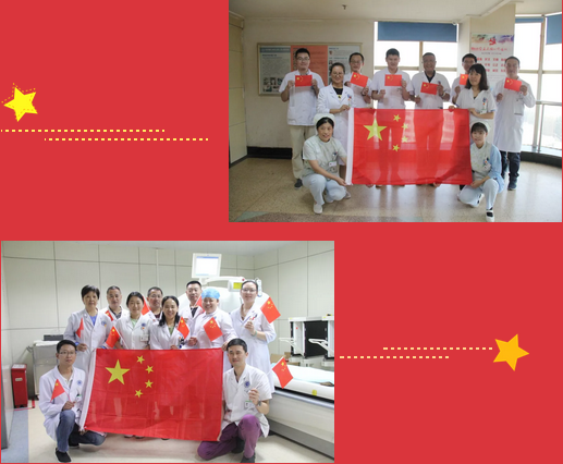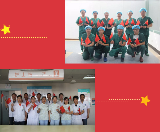 醫(yī)院內(nèi),隨處可見的“中國紅”與醫(yī)務(wù)人員的“天使白”交相輝映,以特有的方式祝福著國家繁榮昌盛!徐州市腫瘤醫(yī)院黨員干部以及職工們心中的愛國情懷盡情釋放,也展示出醫(yī)務(wù)工作者救死扶傷的職業(yè)精神。