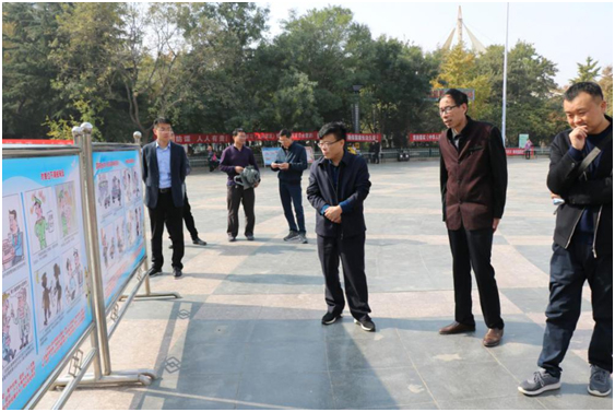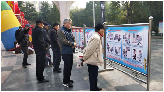 群眾來到宣傳展板前認真駐足觀看