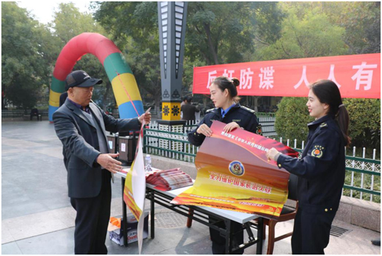 工作人員向過往群眾宣傳反間諜法