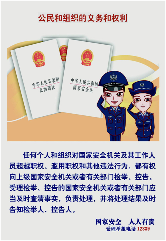 如果公民和組織發(fā)現(xiàn)間諜行為,一,可以撥打國家安全機關(guān)“12339”舉報受理電話舉報;二、可以通過互聯(lián)網(wǎng)受理平臺網(wǎng)站www.12339.gov.cn舉報;三、可以通過信件向國家安全機關(guān)舉報;四、可以直接到國家安全機關(guān)舉報;五、可以通過國家安全人民防線組織向國家安全機關(guān)舉報。