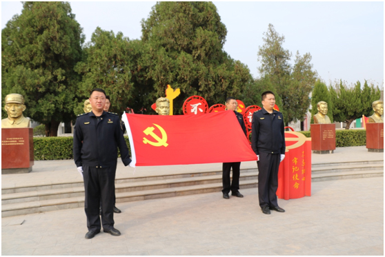 參觀結(jié)束后,在烈士廣場(chǎng),全體黨員面對(duì)黨旗,城管局黨組成員、副局長(zhǎng)魏德華帶領(lǐng)黨員們一起舉起右手,緊握拳頭,重溫了入黨誓詞。大家紛紛表示將以革命先輩為榜樣,將紅色記憶銘刻在心,不斷加強(qiáng)黨的理論知識(shí)學(xué)習(xí),提高黨性修養(yǎng),牢固樹(shù)立不斷進(jìn)取、全心全意為人民服務(wù)的宗旨。接受紅色教育,傳承紅色基因,是共產(chǎn)黨員的光榮使命。作為黨員就要做到不忘初心、牢記使命,在自己的工作崗位上發(fā)揮好黨員的模范帶頭作用,為“強(qiáng)富美高”新沛縣做出應(yīng)有的貢獻(xiàn)。