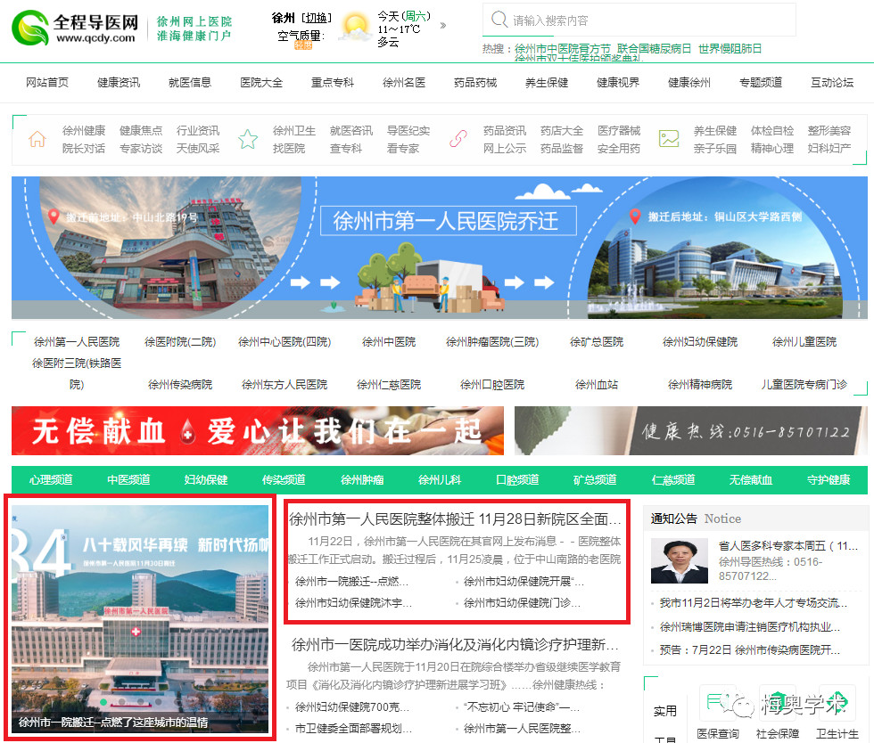 11月22日8:17分,“梅奧學術”公眾號首家發(fā)布徐州市第一人民醫(yī)院整體搬遷的公告。消息引起廣泛關注,新聞媒體、自媒體紛紛跟進。眾多網(wǎng)友留言,表達自己對一院的感激、對新醫(yī)院的祝福。