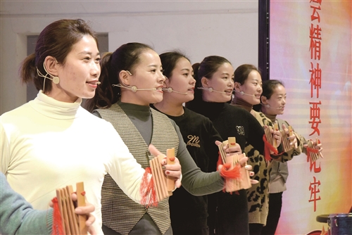 作品不僅節(jié)奏歡快,語言平實,還準確地將四中全會提出的“十三個堅持和完善”都寫進作品。王娟是8位姑娘中的一位,她告訴記者,自己演出的過程,也是學習的過程。“十九屆四中全會的內(nèi)容很多,作為普通群眾我們很難把握好、理解透。創(chuàng)作成快板后,如今在全區(qū)已演出十幾場,群眾反映挺好,最大程度上領(lǐng)會了全會精神。”