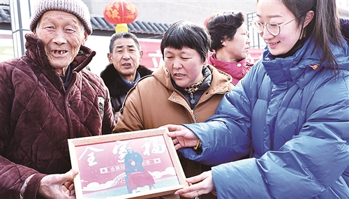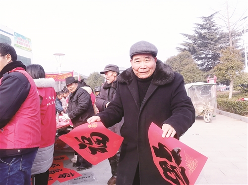 村民在活動(dòng)現(xiàn)場領(lǐng)到新春福字。