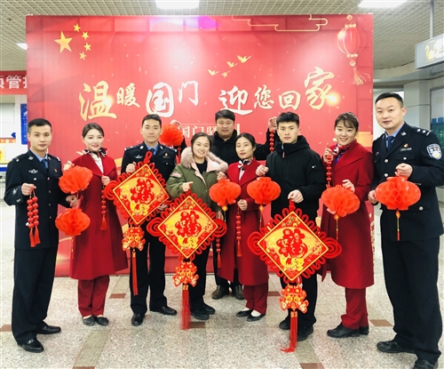 徐州出入境邊防檢查站邊檢處任欣處長介紹,1月17日至2月1日,徐州邊檢機(jī)關(guān)在口岸出入境執(zhí)勤現(xiàn)場點綴體現(xiàn)中國年文化的元素,積極營造溫暖、祥和的節(jié)日氛圍,在口岸現(xiàn)場設(shè)置“國門驛站”,為出人境人員提供引導(dǎo)咨詢服務(wù)。擺放“國門同框”合影墻、“家國情懷”留言板,便于歸國回家人員抒發(fā)情感、表達(dá)祝愿。