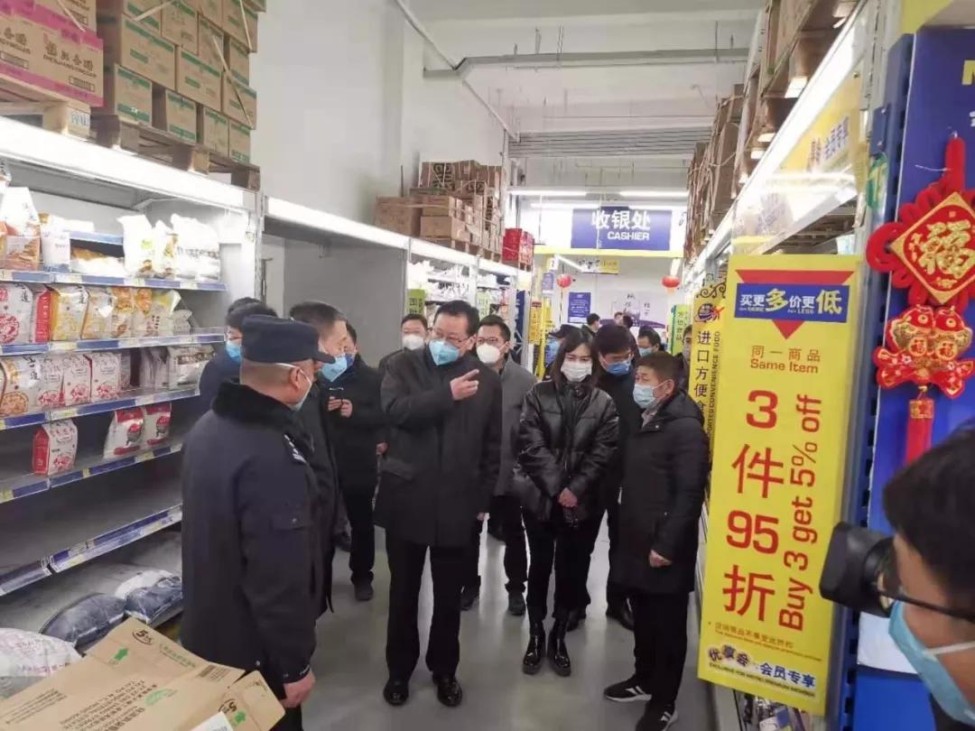 王強來到月星環(huán)球港麥德龍超市察看生活用品的日常供應情況,要求更加周密地做好生活物資準備,確保市場供應。