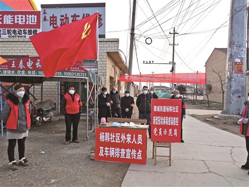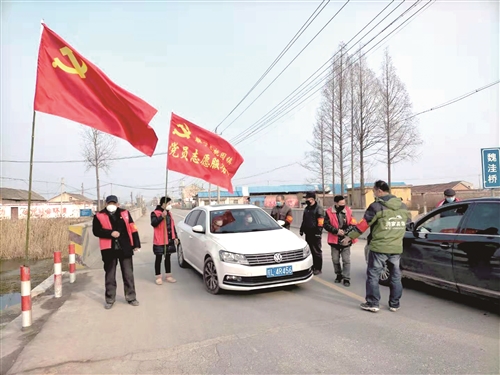 從大年初一開始,睢寧縣每個村口都黨旗飄揚,穿著紅馬甲的黨員對過往車輛登記排查、勸導(dǎo)群眾,與時間賽跑,同疫情決戰(zhàn),守護(hù)人民群眾的身體健康和生命安全。