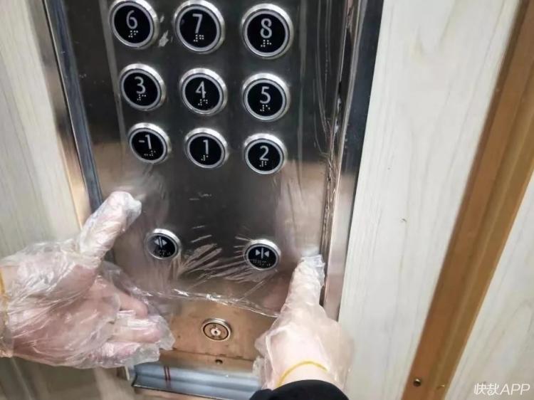 徐州經(jīng)開區(qū)金龍湖街道翠湖社區(qū)電梯里按鍵貼保鮮膜、放按鍵紙巾防新冠疫情