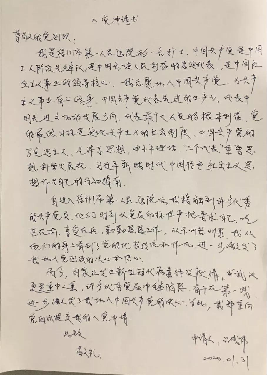 每一條生命都值得敬畏和愛(ài)護(hù)。比起耀眼的成就和光環(huán),呂成偉只想要一點(diǎn)因生命而帶來(lái)的自豪和感動(dòng)。在這場(chǎng)沒(méi)有硝煙的抗擊疫情的第一線,呂成偉鄭重向臨時(shí)黨支部遞交了入黨申請(qǐng)書(shū),表達(dá)了自己向黨組織靠攏,堅(jiān)決打贏疫情防控阻擊戰(zhàn)的決心。