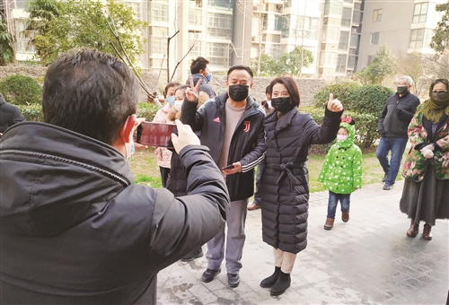 201室的孫大爺忙著用手機給大家拍照,他說他要把這珍貴的時刻記錄下來,發(fā)到他們的單元群里留作紀念;為了慶祝居家隔離結束并且全部身體健康,和家人或鄰居做勝利手勢合影很受大家歡迎;鄰樓的王阿姨也趕來了,扛著她幾萬元一套的照相機來的,她說這么感人的時刻值得拍照留念。