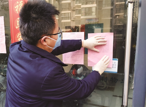 “這個單元11層,一梯三戶,共33戶,除了5戶沒人住、1戶送醫(yī)之外,還剩27戶65位居民。居家隔離14天。為防止居民進出,我們不僅把單元門封了,就連地下室的門也封了。每天,我們要求大家測兩次體溫并上報,對單元門廳、電梯以及各樓層每天進行兩次嚴格消毒。”李小平說,為方便和居家隔離居民聯(lián)系并給大家提供服務,社區(qū)在單元封閉后不久,就針對該單元住戶建立了專門的微信群,解禁時間和相關事項在群內(nèi)發(fā)了通知,要求大家都出門透透氣。同時,請社區(qū)醫(yī)生配合解禁工作,為每一位居民測量體溫并記錄備案。