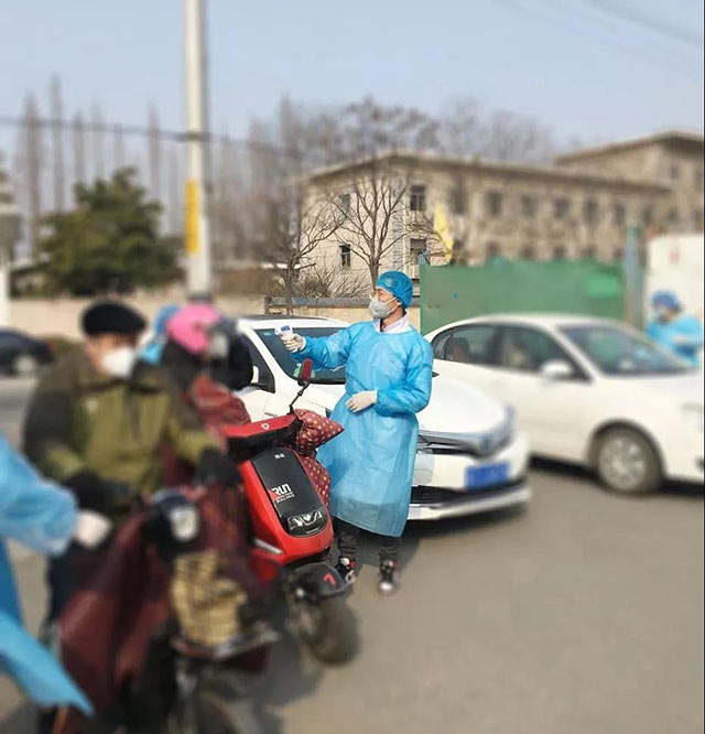 前幾天,隨著我市新型冠狀病毒感染肺炎疫情的防控升級和年后患者復(fù)診人數(shù)的增加,給徐州市東方人民醫(yī)院初檢防控工作帶來了嚴(yán)峻的考驗。做好進(jìn)出院人員初檢對疫情防控尤其重要,但是門診預(yù)檢人員不足,怎么辦?關(guān)鍵時刻,醫(yī)院向全體黨員干部發(fā)出倡議,20名黨員同志主動請纓、積極參加初檢測溫排查等工作。曹鑫向科主任說,“我報名!雖然我還不是黨員、不是干部,在困難面前我要接受黨組織的考驗!”疫情就是命令,防控就是責(zé)任!2月5日天氣陰霾,曹鑫在寒風(fēng)中不厭其煩的詢問每一位進(jìn)出醫(yī)院的患者、家屬,有沒有發(fā)熱、有沒有去過疫情地、有沒有與感染或疑似病例的接觸史,他搶著為每位人員測體溫,承擔(dān)了最危險、最辛苦的工作!