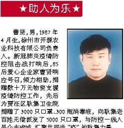 記者日前從市文明辦獲悉,2020年1月“徐州好人”候選人開始公示。“徐州好人”24位(組)候選人按評(píng)選程序,在《徐州日?qǐng)?bào)》、徐州電視臺(tái)新聞綜合頻道刊播公示,同時(shí)在徐州文明網(wǎng)、中國徐州網(wǎng)和淮海網(wǎng)開設(shè)“徐州好人榜”專欄,接受廣大市民評(píng)議投票。公示期從2月10日到2月16日,每位投票者在評(píng)議基礎(chǔ)上每月每個(gè)類別限投1票。除網(wǎng)頁投票外,投票者還可添加徐州文明網(wǎng)公眾微信號(hào)參與投票,微信名稱:徐州文明網(wǎng),微信號(hào):jsxzwmw。