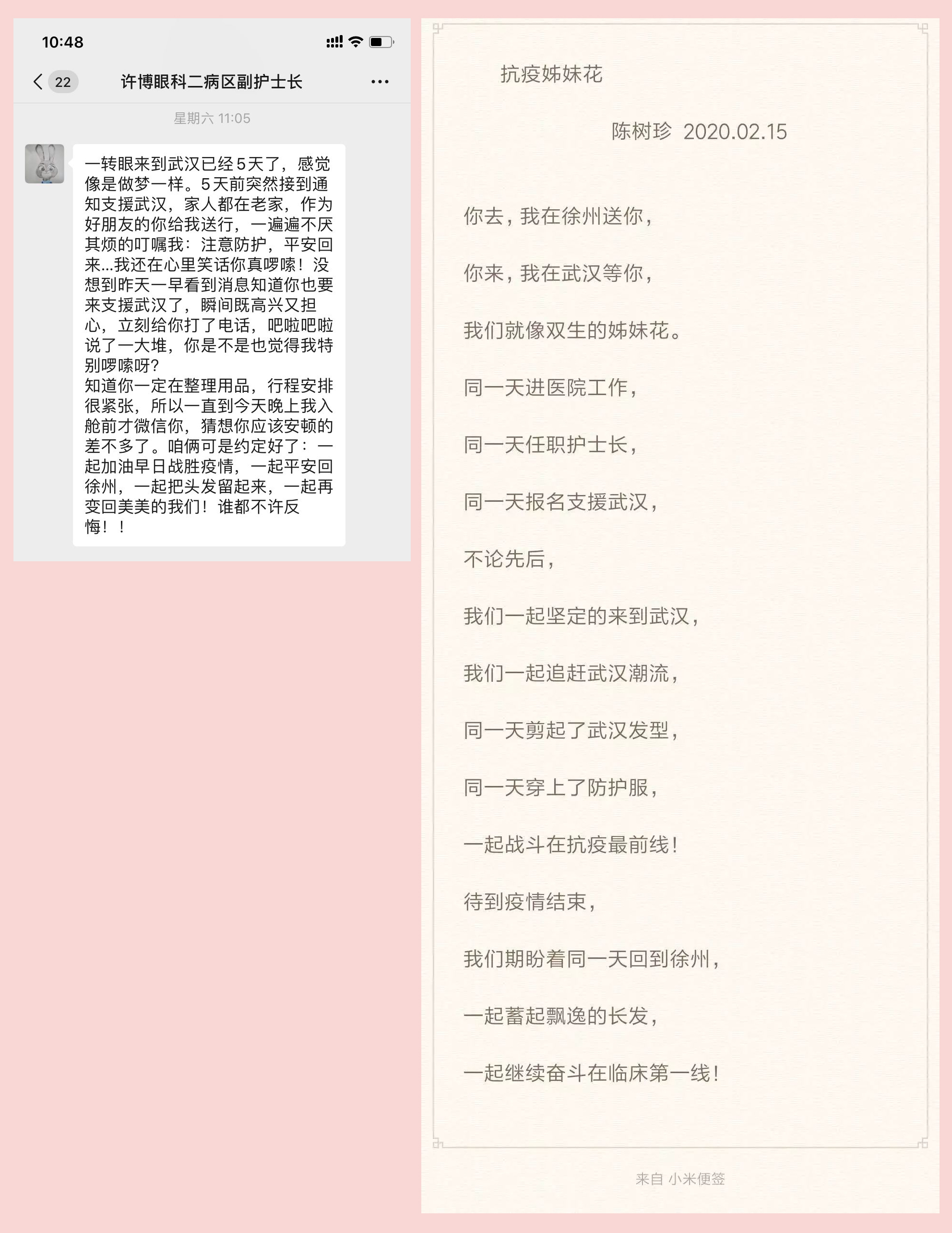 戰(zhàn)地姐妹約定:一起加油早日戰(zhàn)勝疫情,一起回徐州,一起把頭發(fā)留起來(lái),一起再變回美美的自己!