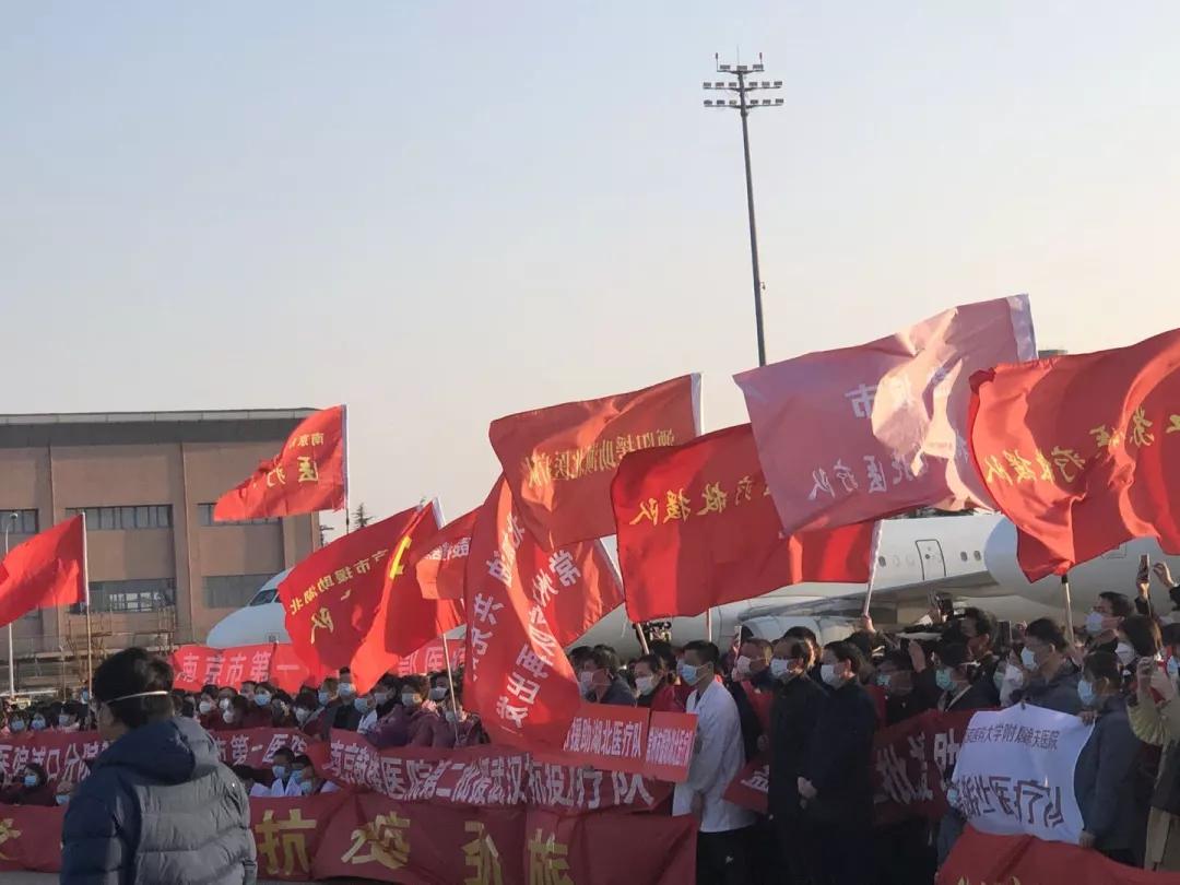 02-09日凌晨,正值夜班的我接到了科室張良主任的電話,沒有絲毫猶豫,我便接下了這一使命,奔赴湖北,支援一線。在這之前,我們急診科早已經(jīng)做好了戰(zhàn)斗動員,所有醫(yī)師都寫下了請戰(zhàn)書,做好了隨時出戰(zhàn)的準備,于我而言,不過是戰(zhàn)線前移,無論身在何地,急診醫(yī)師總是堅守在崗位第一線。2019年,我畢業(yè)于徐醫(yī)急診醫(yī)學專業(yè),完成了住培計劃,在EICU參與了甲流的搶救、也參加過出血熱的救治,有了一定經(jīng)驗,出于職業(yè)敏感度,很早之前就對新冠肺炎有了自己一定的認識,但是疫情的傳染性與烈性,不斷刷新人的認知,誰都不能保證自己不被感染。帶著這樣的思緒,抵達祿口機場后,在機場,省委書記婁書記來機場為我們第五批援鄂醫(yī)療隊壯行,整個機場旌旗飄揚,“十三太保”聚合成了“蘇大強”,我看著周圍從江蘇各地趕來的同袍,我的內(nèi)心反而鎮(zhèn)定下來,也可以說是這壯麗的場面渲染了我,我們正處在一個特殊的歷史時期,國有難,每個人站在這一時代洪流中,都不可能置身度外,我雖不才,卻有一些基礎的醫(yī)學素養(yǎng),有勇氣去貢獻自己微薄的力量。