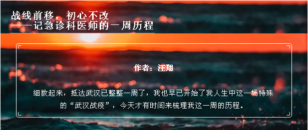 江蘇援湖北醫(yī)療隊隊員、徐州市第一人民醫(yī)院急診醫(yī)學科醫(yī)師汪翔戰(zhàn)地日記
