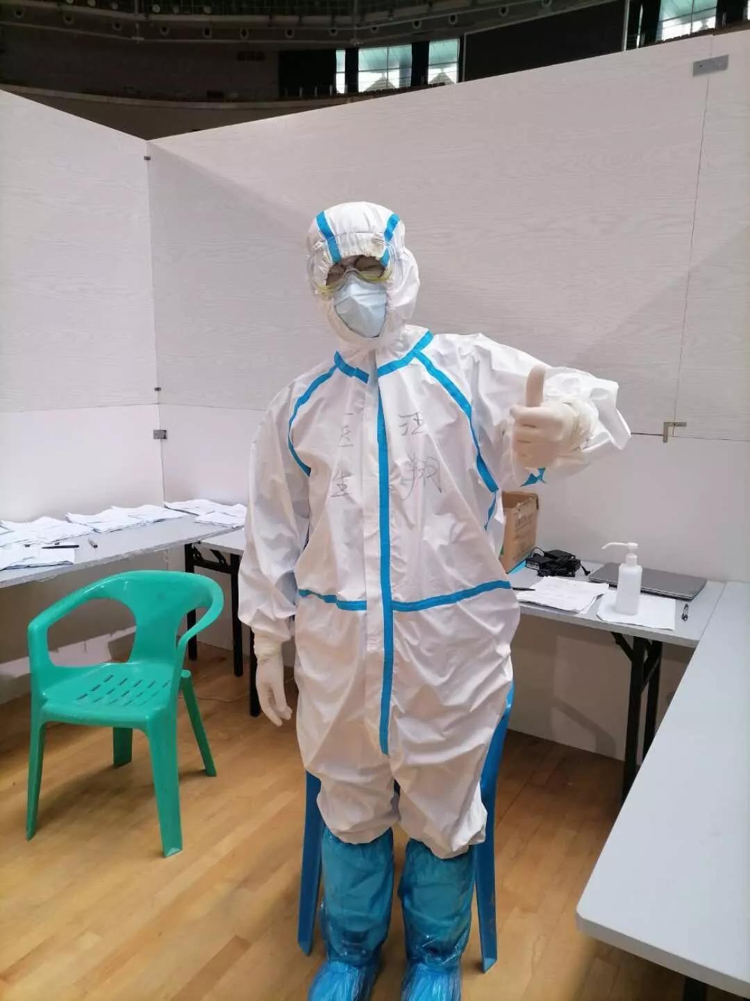 穿脫防護服,依然是我們共同的重難點,在培訓日子里我們觀看視頻,仔細完善每一步的細節(jié),幸好,我們有盡心盡責的幾位護士長,反復指導我們,訓練我們,在這特殊時刻,醫(yī)護變成了“戰(zhàn)士”,既是同事,也是袍澤,是戰(zhàn)友,互相檢查穿戴安全性,把后背交給戰(zhàn)友,我們做好了戰(zhàn)斗準備。