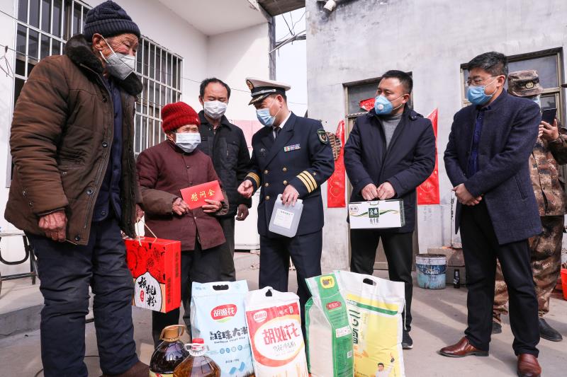 2020年2月20日,徐州市豐縣人武部政委汪峰俊和豐縣退役軍人事務(wù)局局長(zhǎng)渠彪,來(lái)到首羨鎮(zhèn)三官?gòu)R村,慰問(wèn)現(xiàn)役軍人、中部戰(zhàn)區(qū)總醫(yī)院醫(yī)生周運(yùn)明的父母及家人。周運(yùn)明今年春節(jié)期間休假回老家探親,1月29日接到部隊(duì)通知緊急返回武漢,毅然參加中部戰(zhàn)區(qū)新冠疫情救治醫(yī)療隊(duì)。
