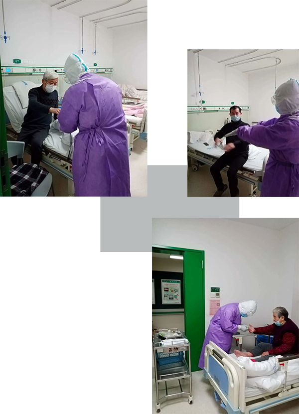 我們在病區(qū)的主要工作是輸液、發(fā)藥、抽血、吸痰、測血糖、霧化吸入,協(xié)助患者進餐,協(xié)助行動不便的病人翻身、大小便等,加強防護,防止病人意外跌倒、暈厥,提供日常幫助。密切觀察病人生命體征并做好記錄,為第二天和下一步的治療提供參考,工作量是非常大的。