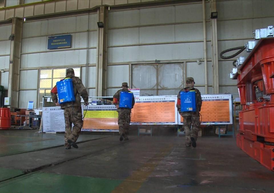 疫情防控不“掉線” 徐州經(jīng)開區(qū)金山橋辦事處民兵應(yīng)急分隊進企業(yè)做消殺