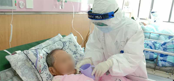 楊帆正在給患者喂藥