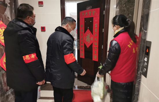 社區(qū)黨務(wù)工作者把蔬菜送到居民家。