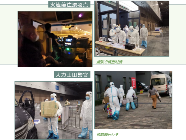 到達(dá)接駁點(diǎn)之后,已是凌晨5點(diǎn)多,由于各項(xiàng)任務(wù)要做到無(wú)縫銜接,隊(duì)員們還需復(fù)核人員信息,對(duì)各項(xiàng)工作再進(jìn)行仔細(xì)交接,等待轉(zhuǎn)運(yùn)的人員由于舟車勞頓,且由于對(duì)我們工作的不理解,情緒不禁低落、焦躁,但隨著轉(zhuǎn)運(yùn)工作的開(kāi)始,在車內(nèi)我們對(duì)他們進(jìn)行了情緒安撫,并詳細(xì)說(shuō)明國(guó)家和政府對(duì)這次疫情所做出的努力,使他們極大觸動(dòng),逐漸敞開(kāi)了心扉,和我們拉起了家常。