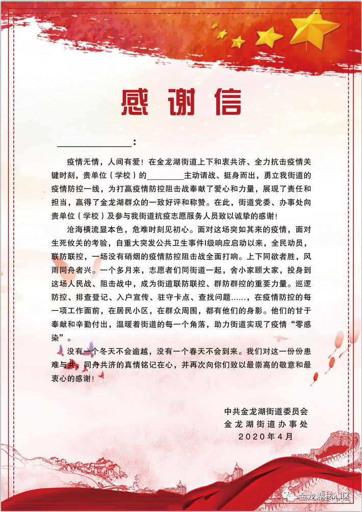 “平常之時見風貌,危難之際顯擔當。”4月20日,徐州經開區(qū)金龍湖街道發(fā)出321封感謝信,感謝在疫情防控期間主動請纓、舍小家保大家的志愿者們。