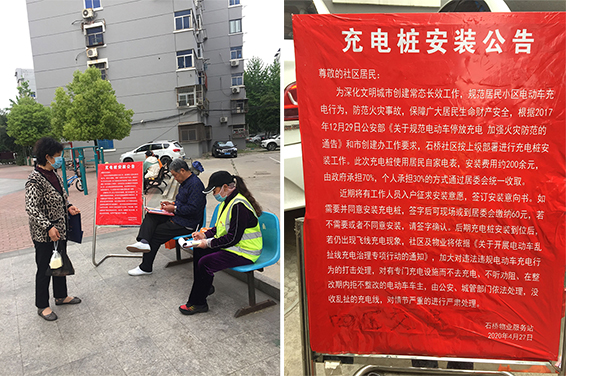 目前,社區(qū)安排志愿者挨家挨戶征求居民安裝意愿,簽訂安裝意向書(shū),如同意安裝現(xiàn)場(chǎng)繳費(fèi)后,即刻安排工人安裝通電,一戶一個(gè)充電箱。如不同意安裝的居民,簽自愿放棄協(xié)議書(shū),若后期仍發(fā)現(xiàn)私拉電線充電,物業(yè)工作人員有權(quán)進(jìn)行處理。