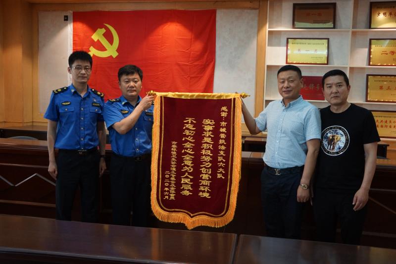 黃淮網(wǎng) 6月1日下午,徐州市容環(huán)境衛(wèi)生協(xié)會(huì)、渣土專(zhuān)委會(huì)及部分企業(yè)代表為徐州市城市管理行政執(zhí)法支隊(duì)六大隊(duì)送來(lái)了“實(shí)事求是積極努力創(chuàng)營(yíng)商環(huán)境,不忘初心全心全意為人民服務(wù)”的錦旗,向一直以來(lái)為渣土運(yùn)輸企業(yè)提供熱情、高效服務(wù),助力企業(yè)更好發(fā)展的六大隊(duì)表示感謝,并進(jìn)行座談。