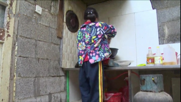 上一年級(jí)的黃嘉媛剛放學(xué)回到家,便放下書(shū)包直奔廚房,準(zhǔn)備食材、搬凳子、點(diǎn)火一氣呵成,熟練的踩上凳子炒菜,開(kāi)始為家人做午飯。