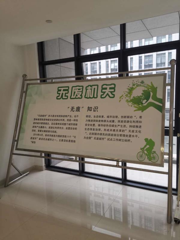 強化宣傳,營造氛圍。銅山區(qū)市場監(jiān)管局充分利用LED屏、宣傳欄、微信群等宣傳陣地,積極宣傳“無廢文化”,營造濃厚的創(chuàng)建氛圍;在辦公樓公共區(qū)域放置“共建無廢城市”的宣傳展板,宣傳綠色環(huán)保理念;在洗手池、食堂等場所醒目位置粘貼節(jié)水節(jié)電標識,呼吁文明用餐、拒絕浪費。15個基層分局也在各單位、街道公共場所開展宣傳活動,共計懸掛條幅28余條,展板28塊、倡議書1000余張,多方位營造濃厚的綠色辦公、綠色出行理念,倡導節(jié)能、低碳、垃圾分類活動,營造創(chuàng)建“無廢機關”的良好氛圍。