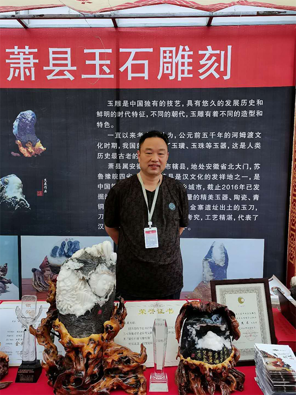 黃淮網(wǎng) 7月12日,蕭縣文化惠民月暨非遺傳承展演活動在龍河藝術(shù)空間盛大開幕。中國玉雕藝術(shù)大師、非遺傳承人焦展大師應(yīng)蕭縣文化旅游局、蕭縣文化館的邀請,攜玉雕作品參加了此次活動。