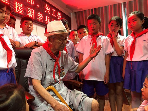 黃淮網(wǎng) 近日,豐縣鳳城街道老干部黨支部、關(guān)工委組織二十多名少先隊員來到街道海子崖社區(qū),聆聽抗美援朝退役老兵程言道講述革命戰(zhàn)爭的故事。