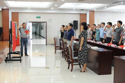 機關四支部全體黨員面向黨旗,由支部副書記薛春同志帶領大家重溫入黨誓詞。