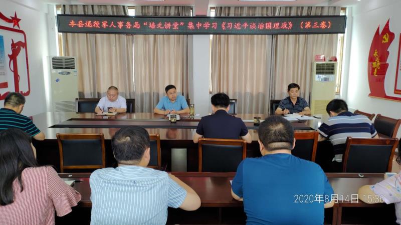 黃淮網(wǎng)(杭媛)  8月14日下午,豐縣退役軍人事務(wù)局舉辦“培元講堂”,豐縣退役軍人事務(wù)局黨組書記、局長渠彪帶領(lǐng)全體機關(guān)人員學(xué)習(xí)了《習(xí)近平談治國理政》第三卷。