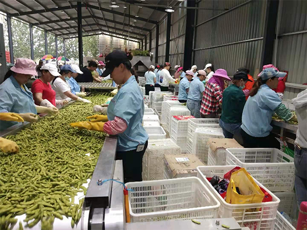 傳統(tǒng)的農(nóng)業(yè)生產(chǎn)方式毛利薄,農(nóng)民收入低,卞長路想到了延長產(chǎn)業(yè)鏈,實(shí)現(xiàn)生產(chǎn)各環(huán)節(jié)利潤增值。2019年底,村集體投資建設(shè)路昌農(nóng)業(yè)蔬菜深加工項(xiàng)目,該項(xiàng)目占地5.6畝,總投資360萬元新建3600平米高標(biāo)準(zhǔn)加工車間一座,600平米恒溫庫一座,200平米辦公室一棟。新建全自動毛豆清洗、分揀、速凍、包裝生產(chǎn)線兩條。年加工毛豆380萬噸,產(chǎn)品銷往上海、北京等各大城市,部分出口到日本、韓國。項(xiàng)目投產(chǎn)后帶動了百余人就業(yè)。項(xiàng)目專門還設(shè)置扶貧車間,以農(nóng)業(yè)發(fā)展助力脫貧攻堅(jiān)。