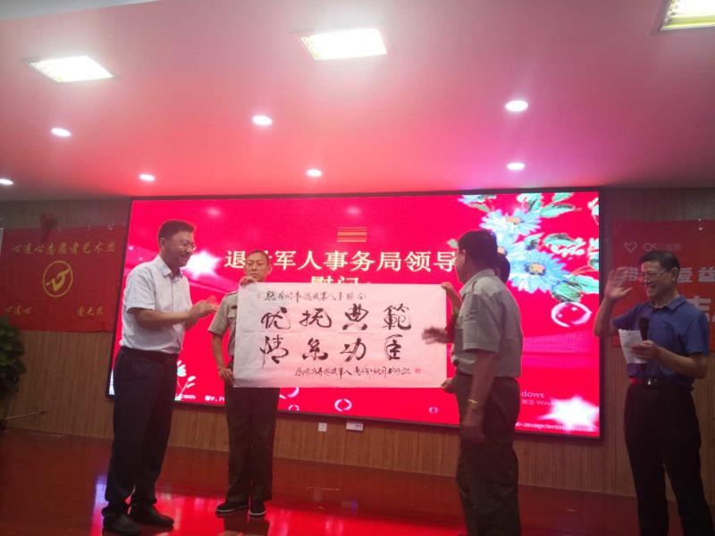 活動(dòng)中,優(yōu)撫對(duì)象代表向徐州市退役軍人事務(wù)局贈(zèng)送了“優(yōu)撫典范 情系功臣”的書法作品,張輝、陳志剛與大家合影留念。
