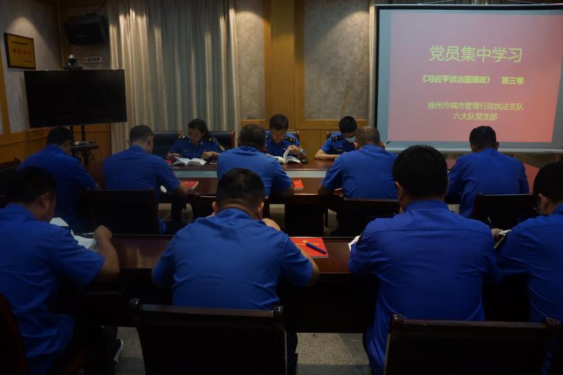 徐州市城市管理行政執(zhí)法支隊六大隊黨支部組織黨員專題學(xué)習(xí)《習(xí)近平談治國理政》第三卷