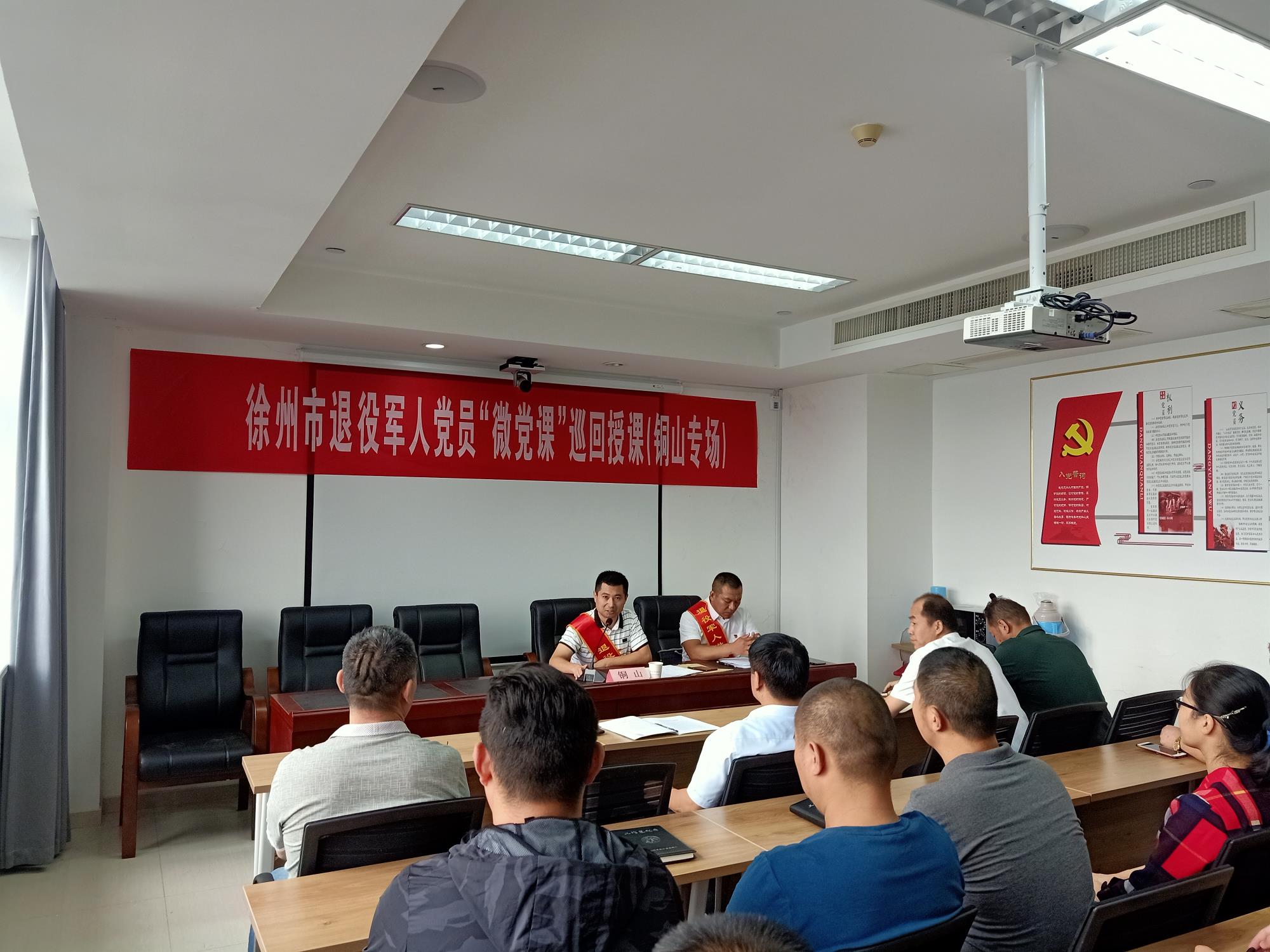 黃淮網(wǎng)(陳韋成)   9月23日上午9:30,徐州市退役軍人黨員“微黨課”巡回授課在銅山區(qū)退役軍人事務(wù)局會(huì)議室舉行,全局干部職工佩戴黨徽參加“微黨課”的學(xué)習(xí)活動(dòng)。