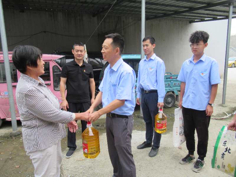 在六堡村黨群服務(wù)中心,中建三局徐州工程學(xué)院項(xiàng)目黨支部為六堡村的貧困戶帶來了米、面、油等基本生活物資。之后,支部書記吳斌望又帶領(lǐng)支部成員實(shí)地走訪貧困戶,將生活物資送到他們家里。