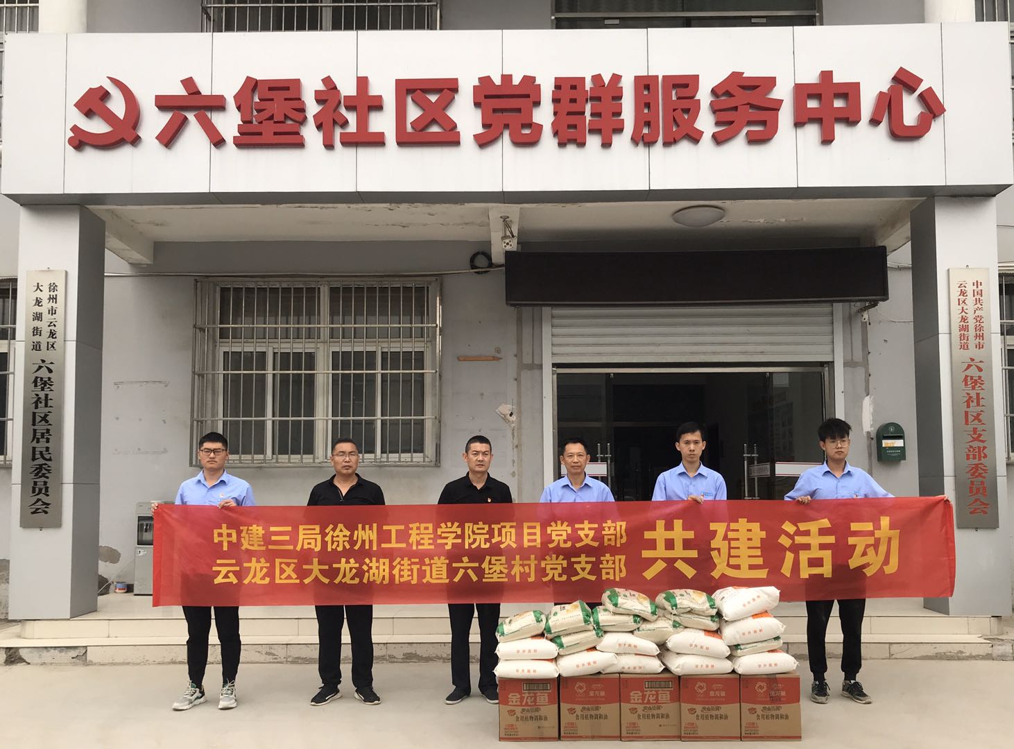 黃淮網(wǎng)   9月25日上午,在“雙節(jié)”即將來臨之際,徐州市云龍區(qū)大龍湖街道六堡村黨支部和中建三局徐州工程學(xué)院項(xiàng)目黨支部開展支部共建活動。中建三局徐州工程學(xué)院項(xiàng)目黨支部書記吳斌望、大龍湖街道黨工委副書記、六堡村黨支部書記張龍出席共建活動。