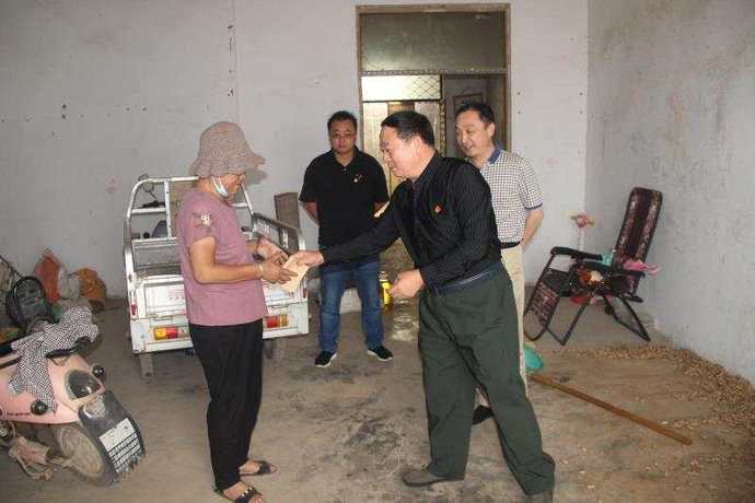 在大吳村書記張曉猛的帶領下來到建檔立卡戶柳現(xiàn)華家中,慰問組一行為她家送去了食用油、月餅、大米、面粉、牛奶和慰問金及節(jié)日的祝福。柳現(xiàn)華,79歲,老伴多年前過世,兒子也因病去世,兒媳改嫁,現(xiàn)在和17歲孫子張超、13歲孫女張景晰祖孫三人相依為命生活一起,生活全靠好心村民幫助,家庭經濟十分困難。誰知,屋漏偏逢連夜雨,一年前她又患上了胃癌,需長期住院和藥物控制病情來維持生命,化療自身都需要別人來照料,談何照顧孫子、孫女,使原本困難的生活更是雪上加霜難以為繼,“一人失能、全家致貧”。慰問組成員反復叮囑她要注意身體,鼓勵她增強信心,積極樂觀生活,困難是暫時的。有什么情況同我們講,黨和政府一定會幫助您們的,日子會越過越好的。