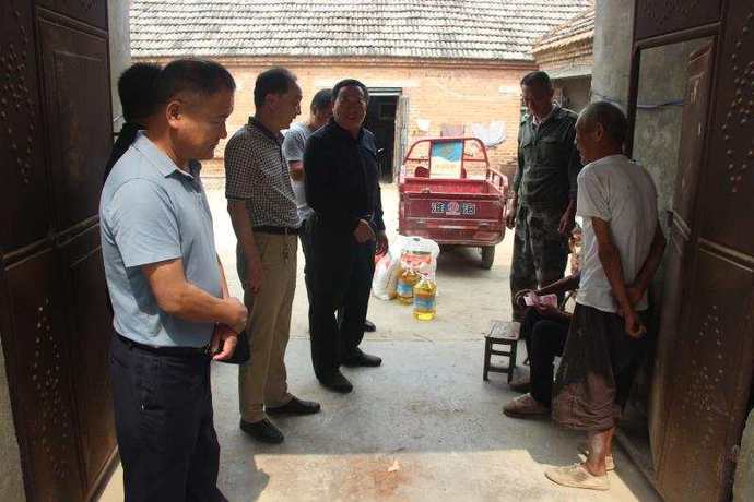 當來到建檔立卡戶閆長信的家中時,他們還吃著用水煮熟的南瓜作為主食的早餐,看到有人到來,迅速將碗藏到身后。79歲患有心臟病和老年病的閆長信吃力的想站起來打個招呼卻未能如愿癱坐著,生活不能自理,要專人打理才能生存。75歲妻子周為蘭智力殘疾,66歲弟弟閆幸福是一位聾啞人,缺衣少食,喪失三個勞動力的家庭真是無可奈何,家中又無其他任何經濟收入。其唯一的兒子雖已成家,但因家庭情況也已離異,獨自一人帶著孩子在外地打工,長期不和家里聯(lián)系。慰問組成員一面詳細了解他家的基本情況、身體狀況、生活情況和存在的困難,一面將食用油、月餅、大米、面粉、牛奶和慰問金送到他們手中,并提前送上節(jié)日的祝福和問候。并安慰他們道,要注意身體,增強生活信心,勇敢地面對生活,要對生活充滿希望。還與他家庭建立了長期的聯(lián)系,并表示今后在生活上有什么困難和問題,會全力幫助他們,讓他們過上幸福安康的晚年,使他們對生活充滿了信心。“謝謝關心,感謝黨和政府,經常來看望我們!” 閆長信笑著說道。