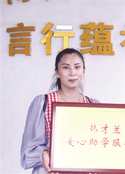 2.韓才蘭,女,1978年6月生,江蘇未來之星教育科技有限公司負(fù)責(zé)人。她心系軍營,關(guān)心戰(zhàn)士冷暖,夏天為戰(zhàn)士們送空調(diào)、風(fēng)扇,冬天為戰(zhàn)士們送去防寒物資。同時(shí),她還積極開展軍民共建,與王杰部隊(duì)?wèi)?zhàn)斗模范連開展學(xué)雷鋒活動(dòng),深入基層服務(wù)百姓,深入學(xué)校開展國防教育和紅色文化公益宣傳講座,并發(fā)起愛心助學(xué)活動(dòng),定向資助3名貧困生,累計(jì)資助金額3萬余元。