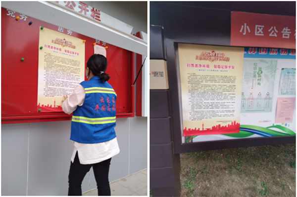 活動中,網(wǎng)格員在各網(wǎng)格內(nèi)小區(qū)進(jìn)出口、單元樓道口、社區(qū)宣傳欄等廣泛張貼“掃黑惡凈環(huán)境 促穩(wěn)定保平安—致全區(qū)廣大人民群眾的一封公開信”,同時,網(wǎng)格員和平安志愿者還在小區(qū)內(nèi)、居民商業(yè)街等人員密集地現(xiàn)場發(fā)放公開信,鼓勵居民協(xié)助政府以更大力度查處黑惡案件、清剿黑惡勢力。